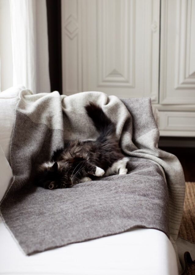 こちらもフィンシープウールを使用した柔らかな肌触りのブランケット。