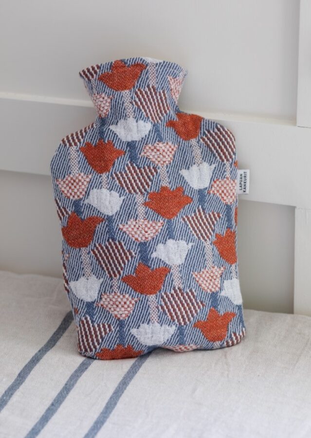 ラプアンカンクリのロングセラー、MARIAポケットショールと同じ生地で作った湯たんぽ。